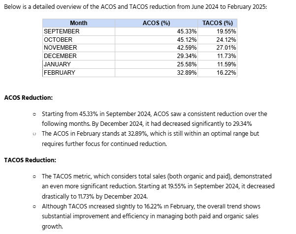 • Improved ACOS and campaign efficiency
