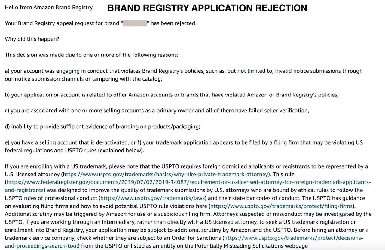 • Amazon repeatedly rejecting Brand Registry applications