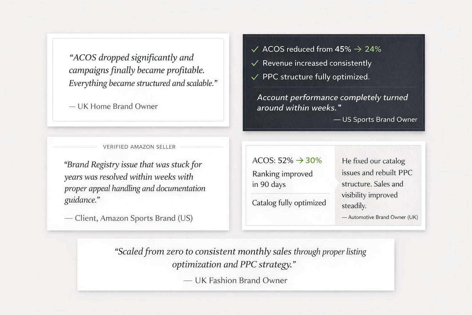 I don’t just “run PPC” or “manage listings”, I manage the entire Amazon ecosystem to help brands grow sustainably, improve profitability, and scale with confidence.